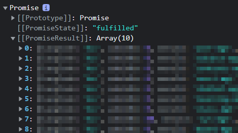 데이터 말고 자꾸 Promise가 반환될 때 api를 날려서 데이터를 return받는 함수를 만들었고 이 함수의 실행값(=데이터)를 변수로 받으려했는데 자꾸 저렇게 뜬다면 await를 썼나 확인해주면 된다. 1. await 확인 const setInfo = async () => { const data = await getInfo(); // await 썼나 확인 } Javascript 2023.04.20